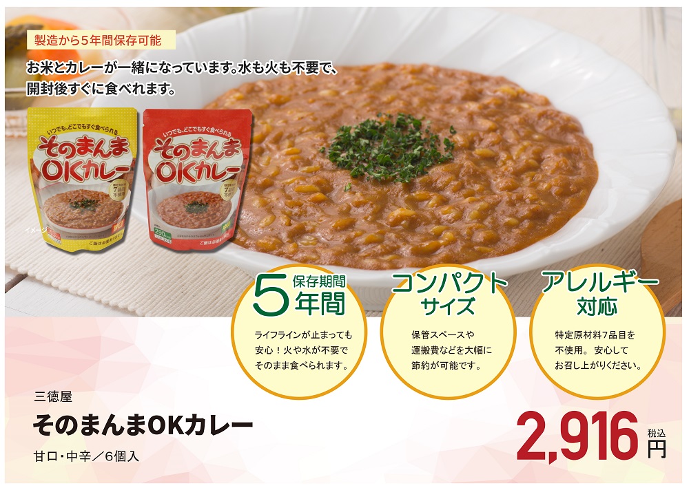 - 三徳屋 そのまんまOKカレー(甘口・中辛/6個入) 税込2,916円
