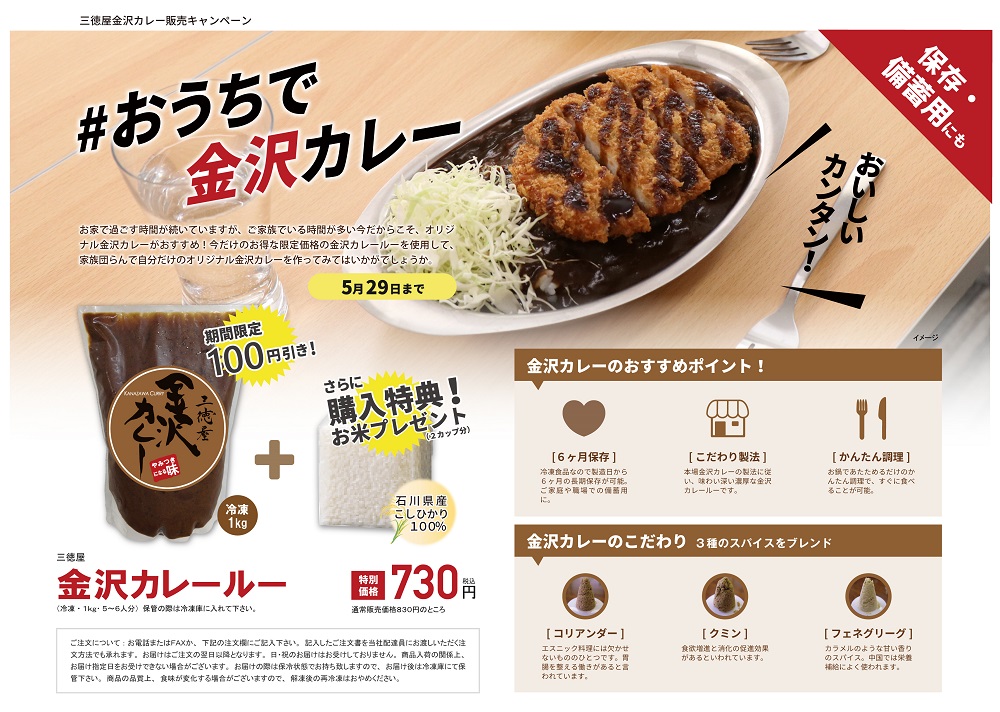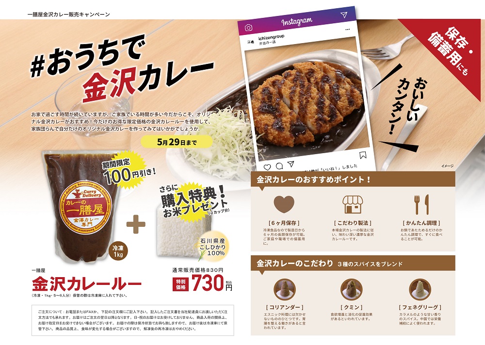 お家で過ごす時間が続いていますが、ご家族でいる時間が多い今だからこそ、オリジナル金沢カレーがおすすめ!
