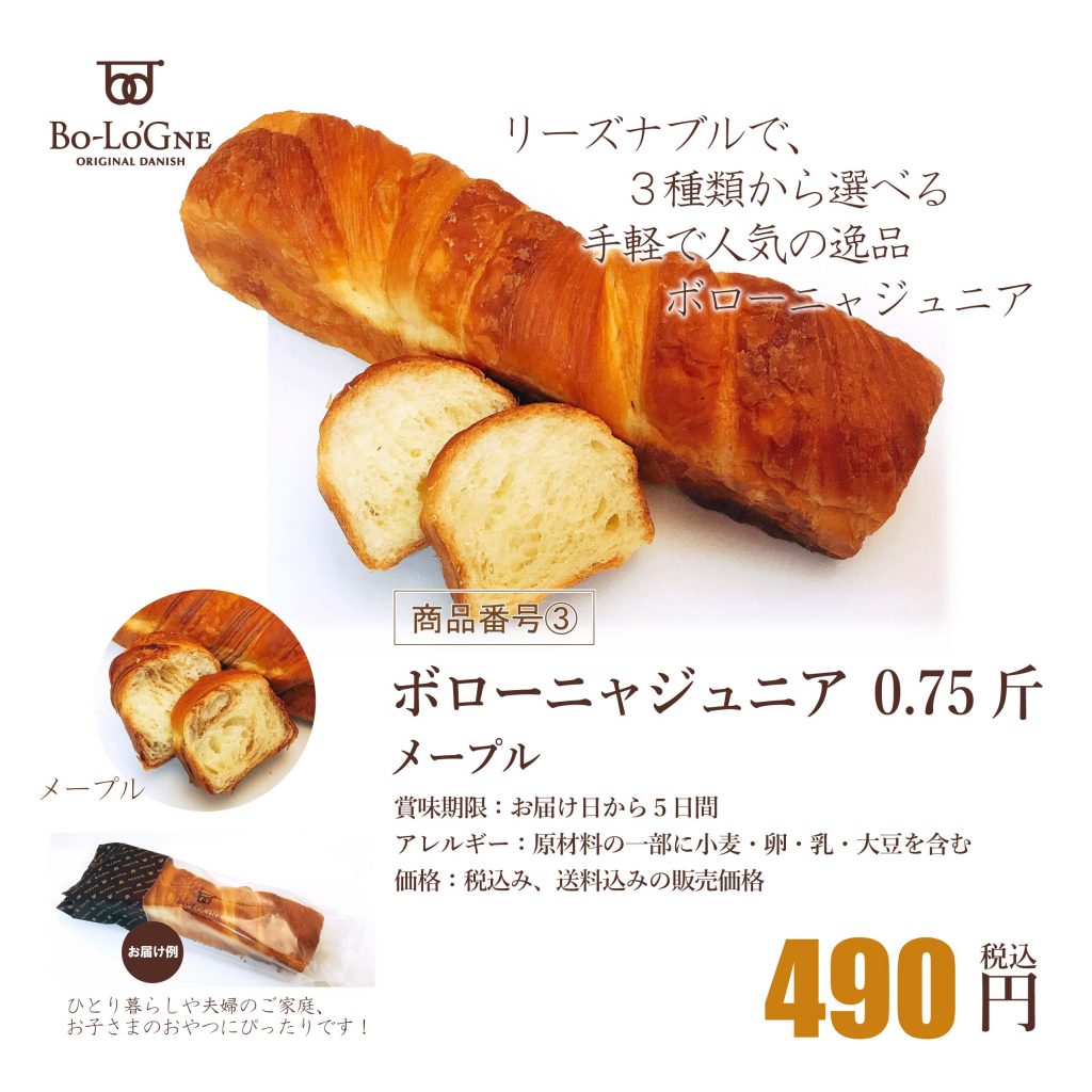 商品番号③ ボローニャジュニア 0.75斤(メープル味) 税込490円
