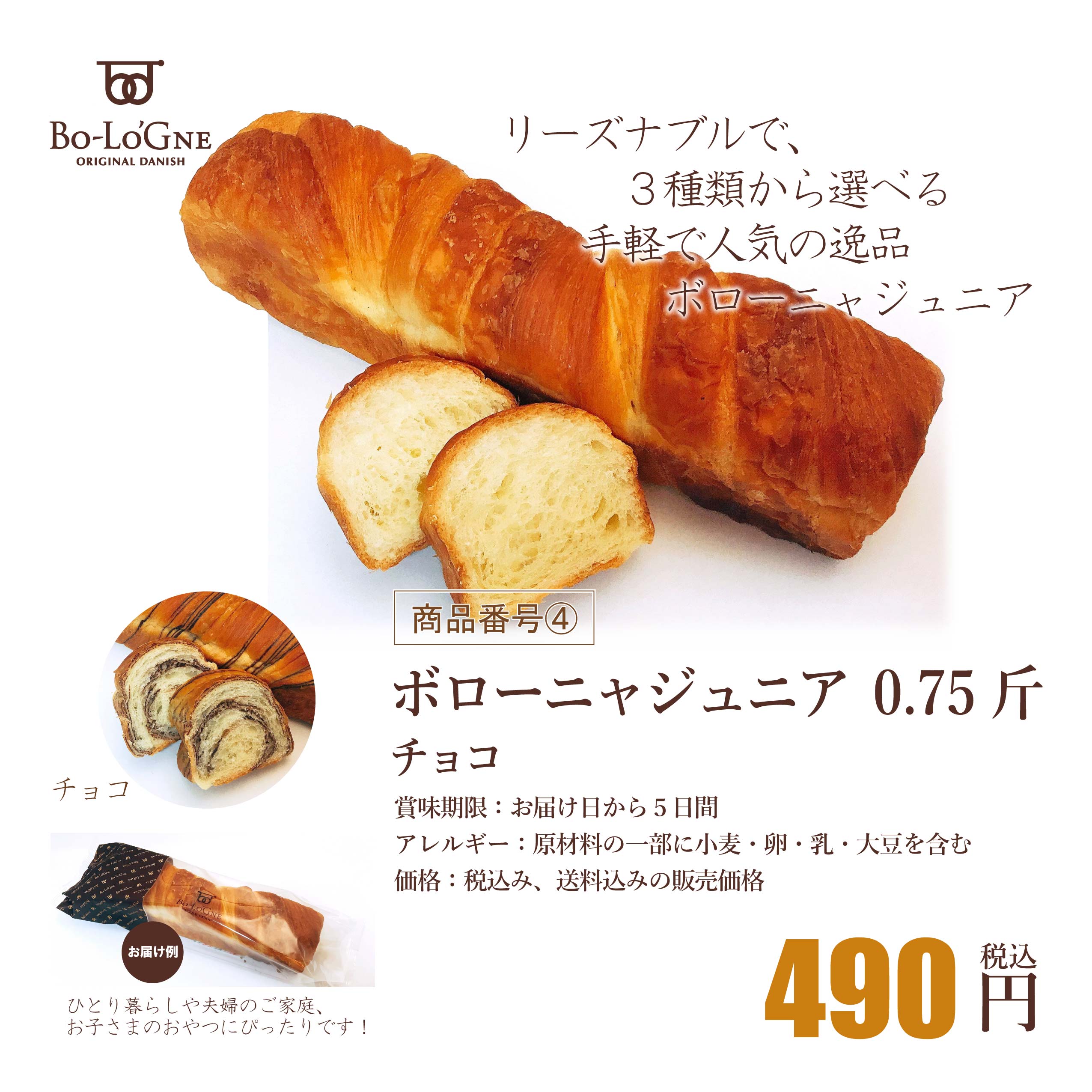 商品番号④ ボローニャジュニア 0.75斤(チョコ味) 税込490円