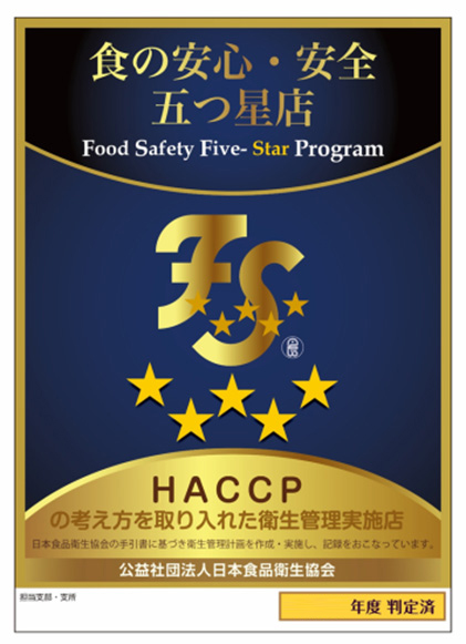 また、ジョイランチが運営いたします社員食堂はすべて日本食品衛生協会により認証を受けた「食の安心・安全5つ星店」として活動を実施しています。